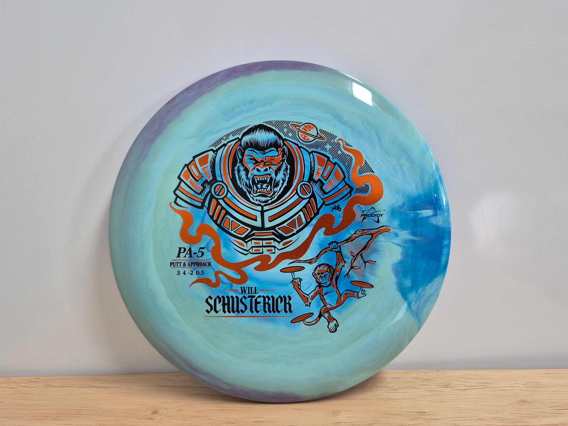 The PA5 is an understable putter that can fit the game of every player. It is a smooth throwing disc best used for hyzer flip straight shots and long anhyzer turnovers. The PA5 has lots of glide allowing it to stay in the air and push long distances for a putter.