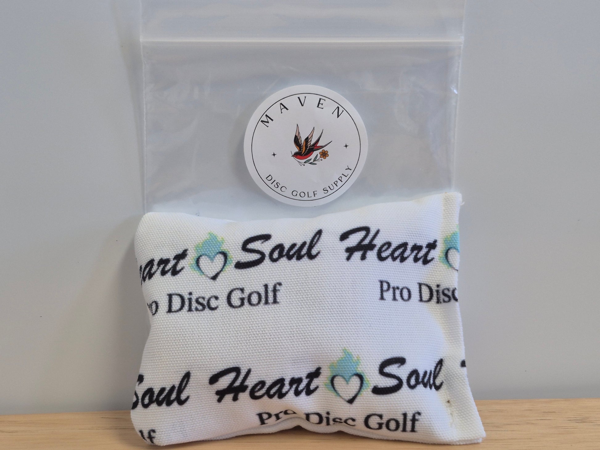These sacks are hand made by MAVEN Disc Golf Supply and offer a great way to dry hands without dealing with excess problems given by other bags. Little/no chalk residue left behind while still keeping hands dry.