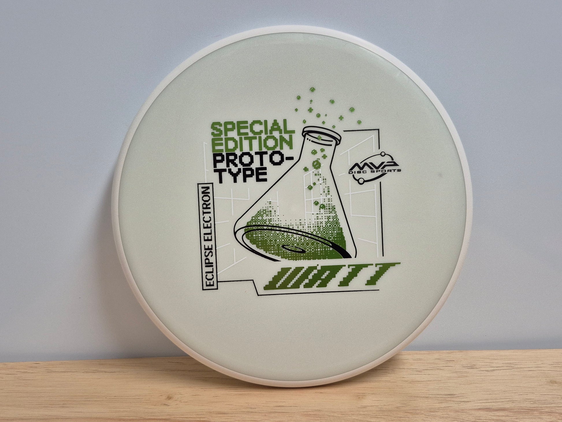 The Eclipse Electron Watt Prototype combines Electron putting plastic and the glow of Eclipse plastic to give a putter that will light up the sky as it bangs chains. The combination plastic provides high levels of grip to give to every putt.